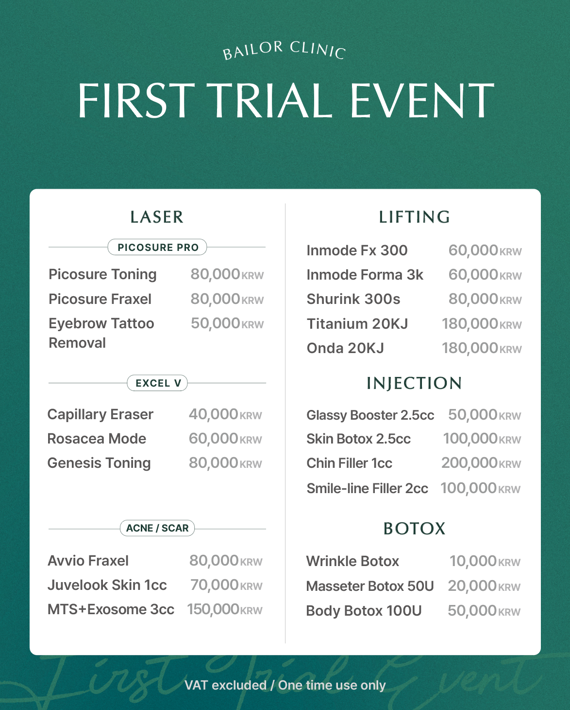 Gangnam Bailor Skin Clinic offers a comprehensive range of services, including: